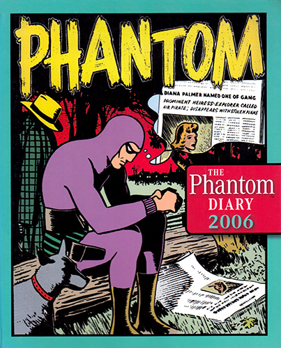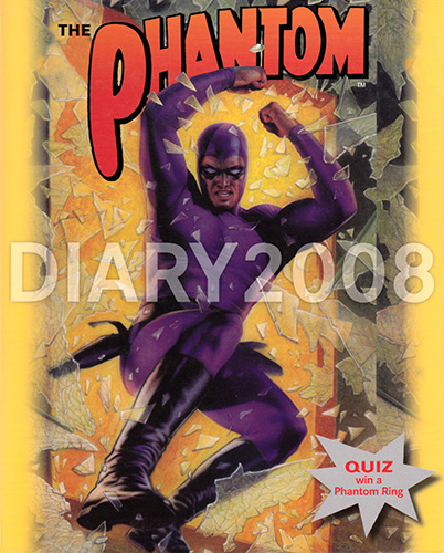 Beginning in 1993 and published almost annually by Mallon in Australia, the Phantom diary has become something of a staple for Aussie Phantom phans at Christmas time. The series began as oversized hardcover editions containting lots of background information and trivia about The Phantom.The 1998 edition moved to spiral binding and instead concentrated on cover art, reproduicing art from Phantom comic covers from around the world. 2005 then combined these two ideas together with ring binding and a hard cover. These editions also saw the return of trivia.